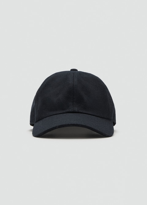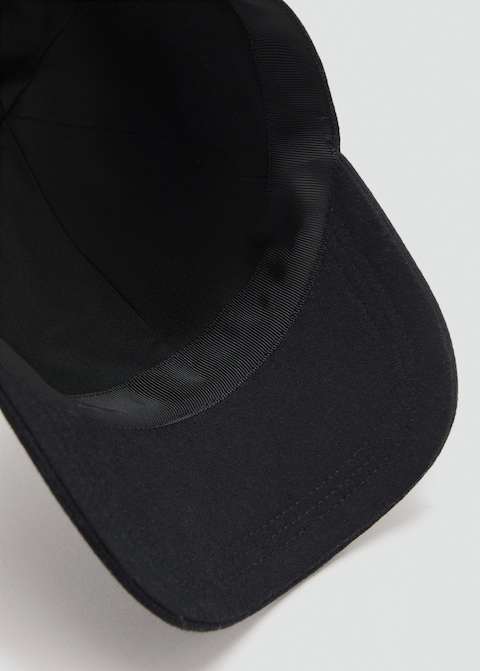 Cotton and wool mix. With a visor. Back hook-and-loop fastener adjustment.