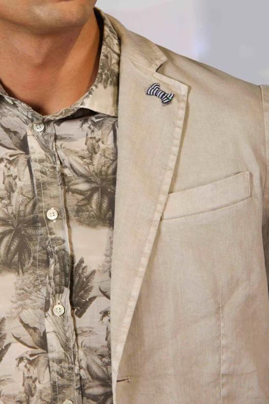Light Beige Men's Cotton and Linen Twill Suit Jacket
