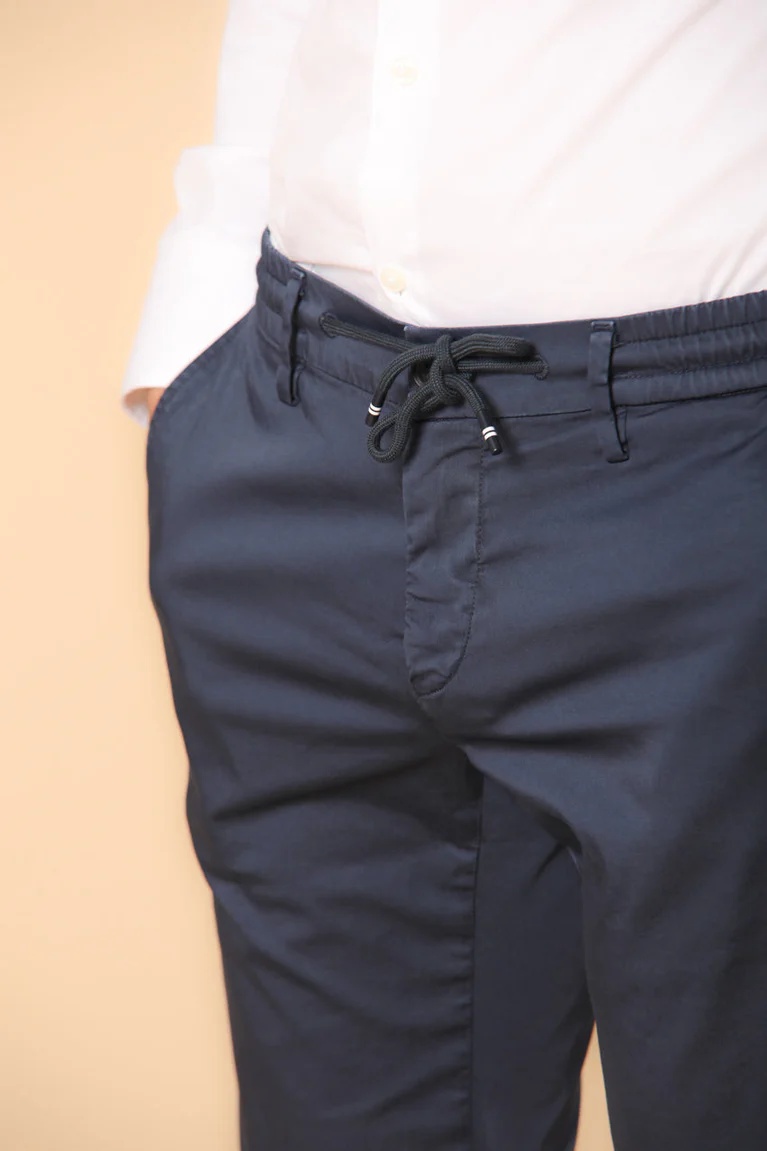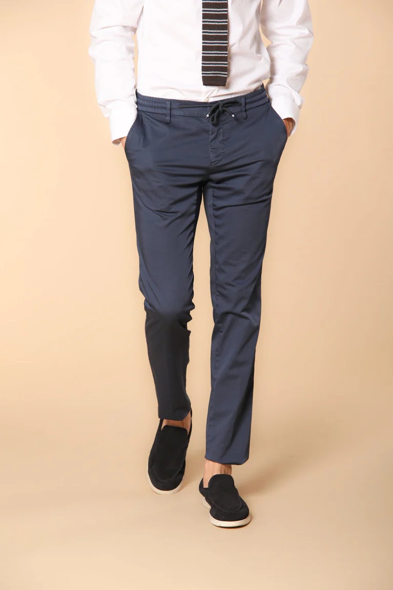 Men's Navy Blue Twill Elastic Waist Slim Fit Trousers
