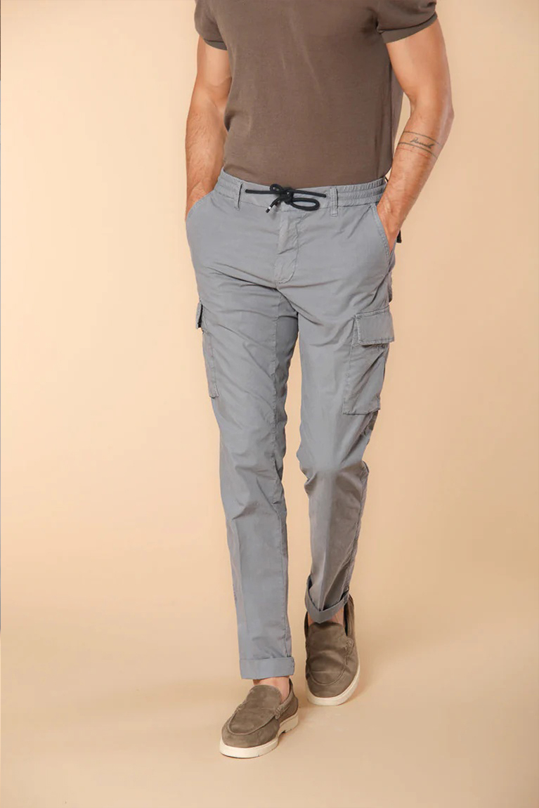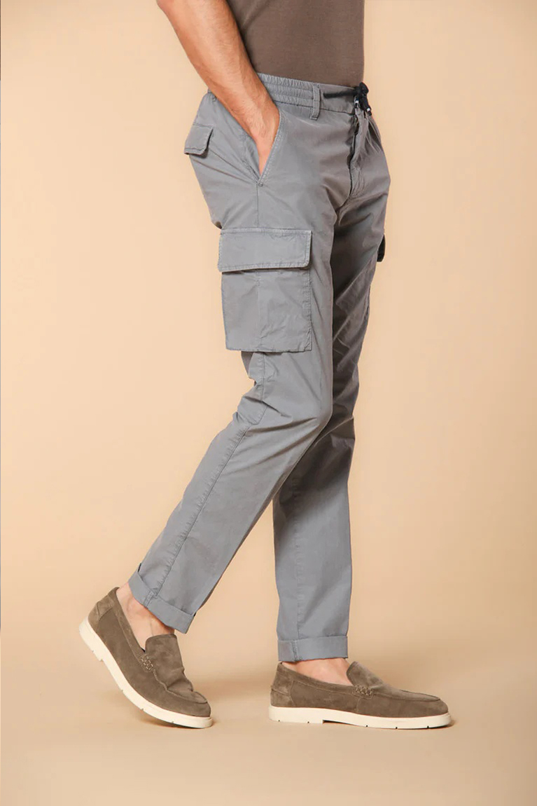 Men's Air Force Blue Slim Fit Parachute Fabric Cargo Pants with Large Pockets