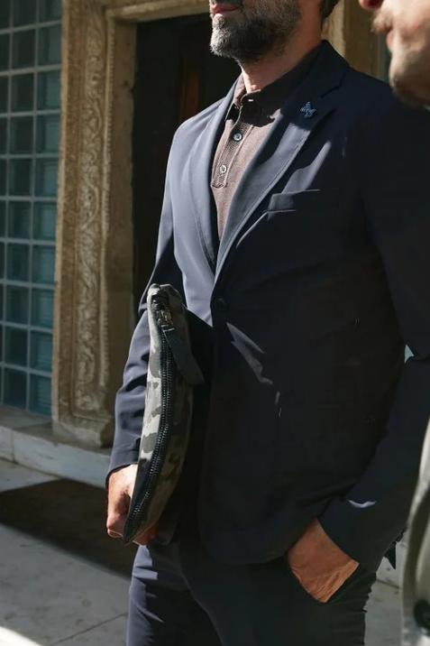 Men's Business Casual Button-Down Knit Navy Blue Blazer 496725