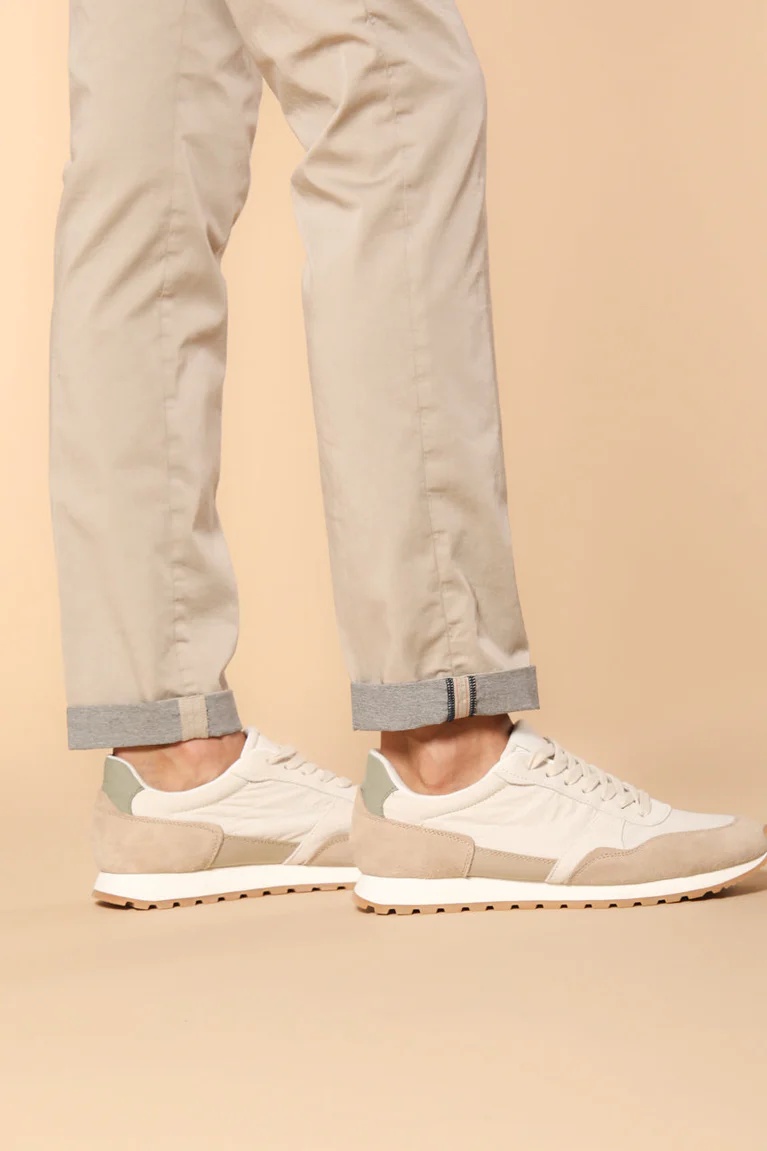 Men's Light Beige Cotton Casual Twill Slim Fit Trousers