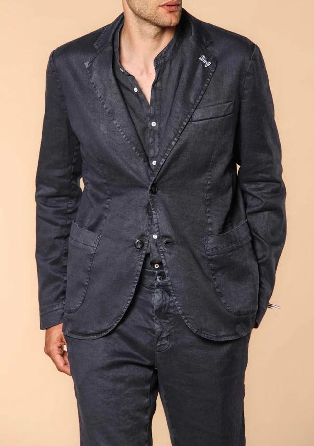 Navy Blue Men's Cotton and Linen Twill Suit Jacket 496482