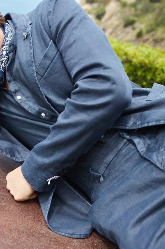 Navy Blue Men's Cotton and Linen Twill Suit Jacket
